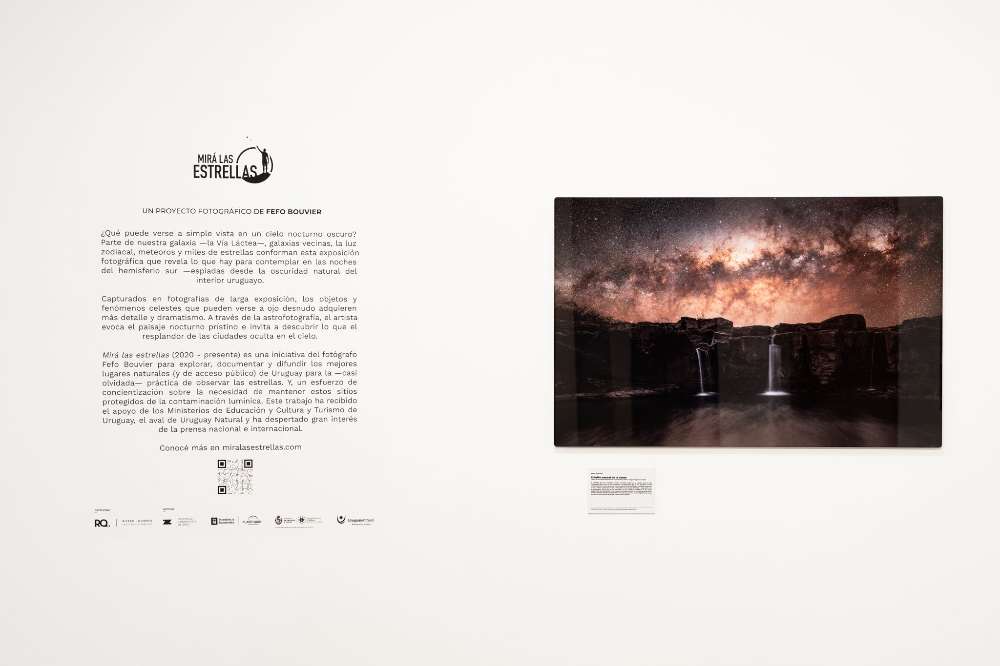 What can be seen with the naked eye in a dark night sky? Part of our own galaxy—the Milky Way—, neighbouring galaxies, zodiacal light, meteors and thousands of stars make up this photographic exhibition that reveals what there is to be seen in the southern hemisphere nights— as spied from the natural darkness of the Uruguayan interior.
