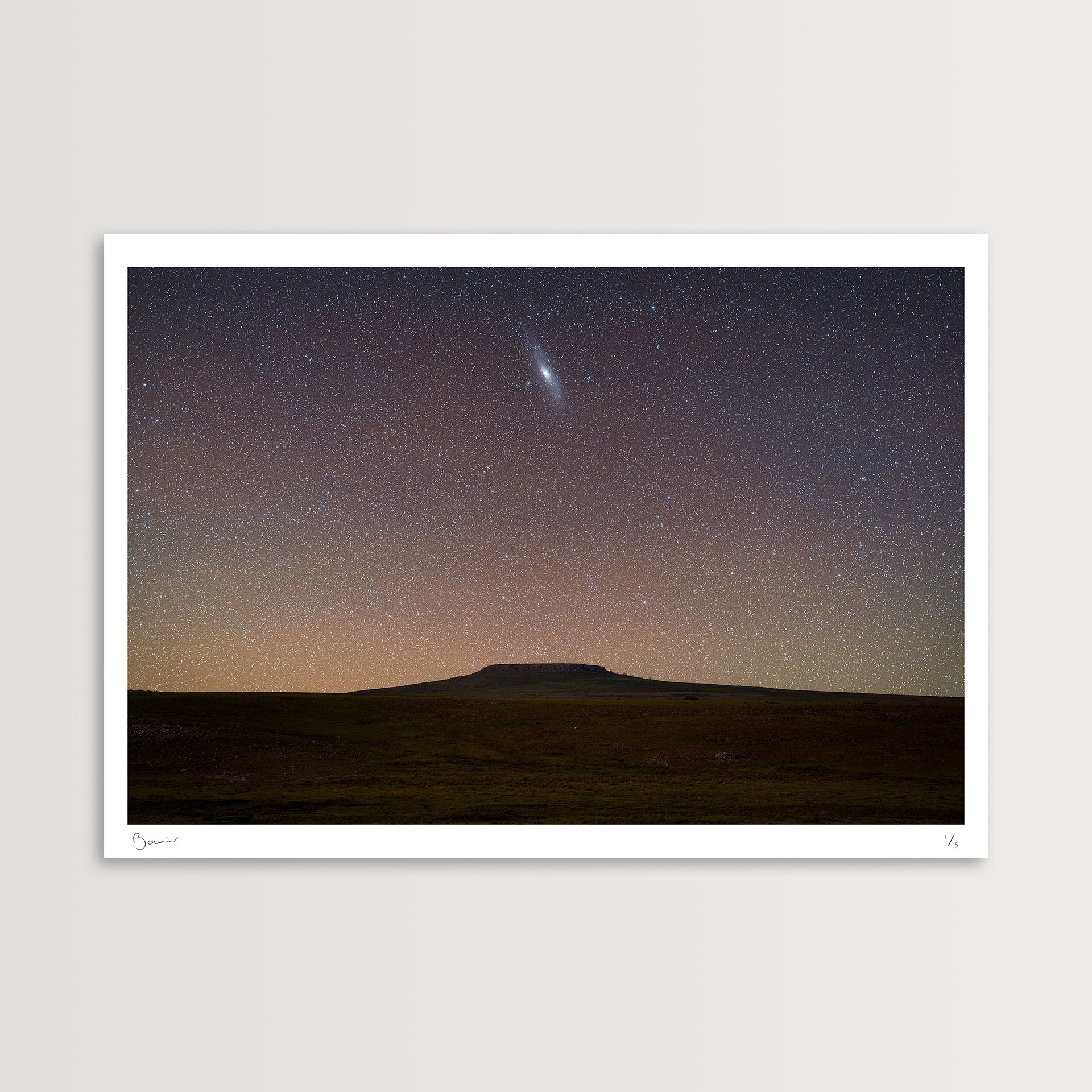 The Andromeda galaxy over a flat hill in central Uruguay (Paysandú Department). This is the furthest astronomical object visible to the naked eye from Earth (although some claim to see the Triangulum galaxy, which is a little further away).